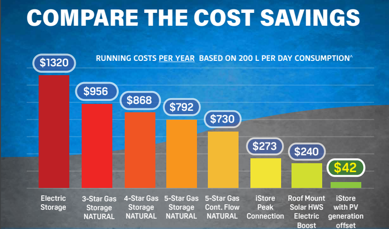 Up to 74% energy savings compared to Electric storage!