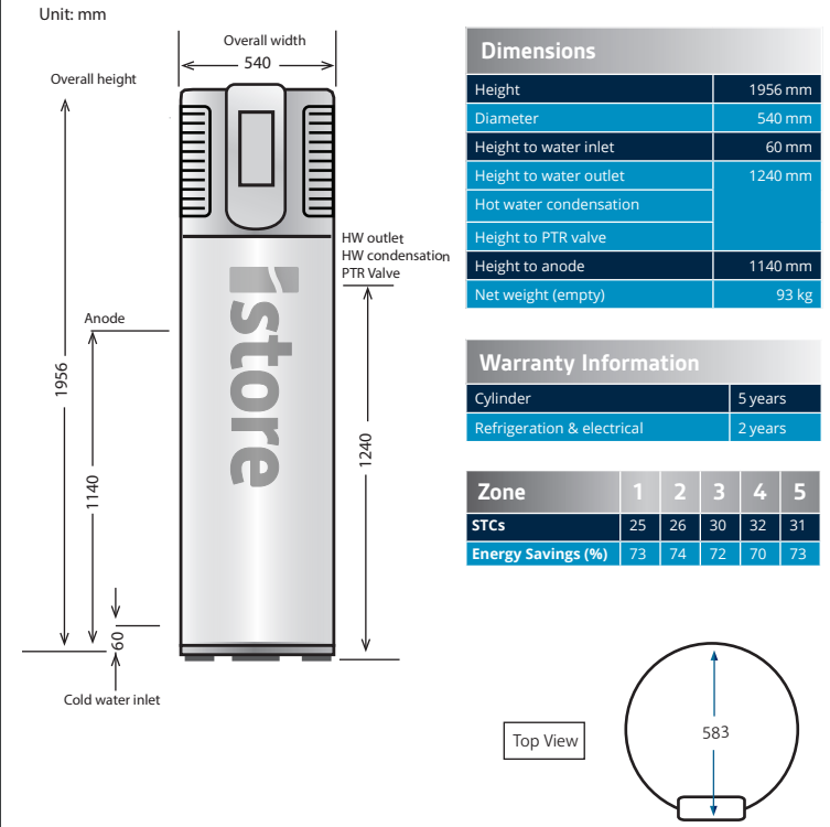 180 Litre Unit Dimensions